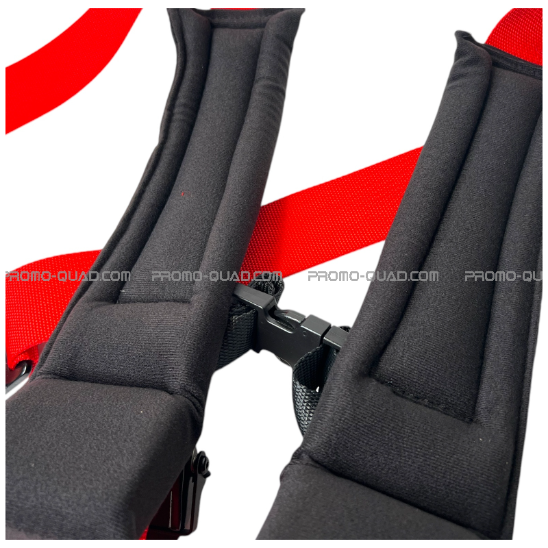 Cette ceinture de sécurité à 4 points de 2 pouces de large est dotée de coussinets cousus pour le confort, d'une quincaillerie noire pour un style cool et d'ajustements rapides sur les épaules.