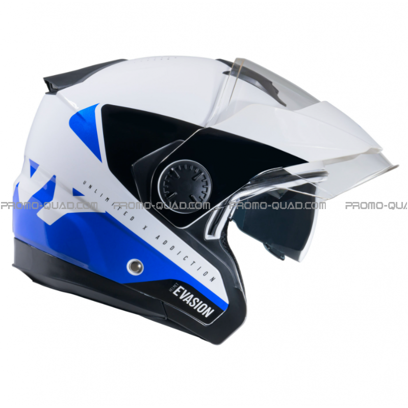 The EVASION helmet is an open-face model approved to ECE 22.06 standards, featuring dual lenses and a small removable visor. This helmet is particularly suited to quad biking but also offers excellent versatility for road use with small and medium-displacement motorcycles.