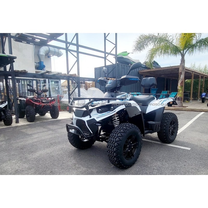 Ultra-quiet and emission-free, the MP4 quad is the ideal vehicle for getting around indoors or outdoors with complete peace of mind. The MP4 qualifies for free registration in 80% of the country (excluding shipping costs). Equipped with four 12-volt batteries, for a total of 48 volts, the MP4 requires 5 hours to charge for a range of 30 to 70 km (depending on the weight of the rider and passengers, as well as riding style).