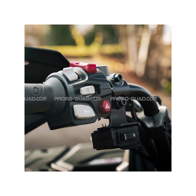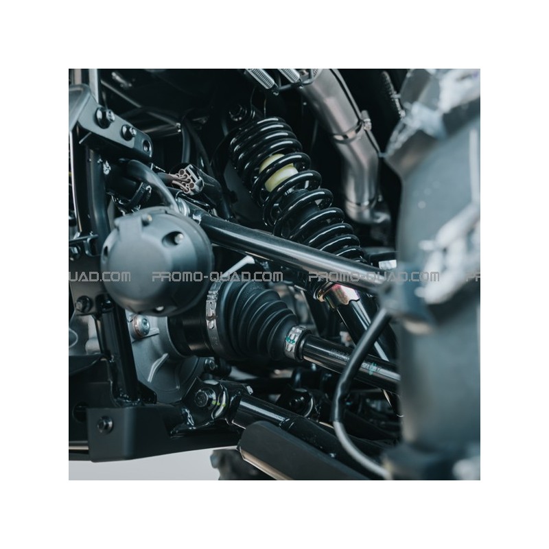 Transmission : - Variateur auto - Vitesse longue ou courte + marche arrière - Mode 4x4 à la demande - Différentiel avant avec blocage