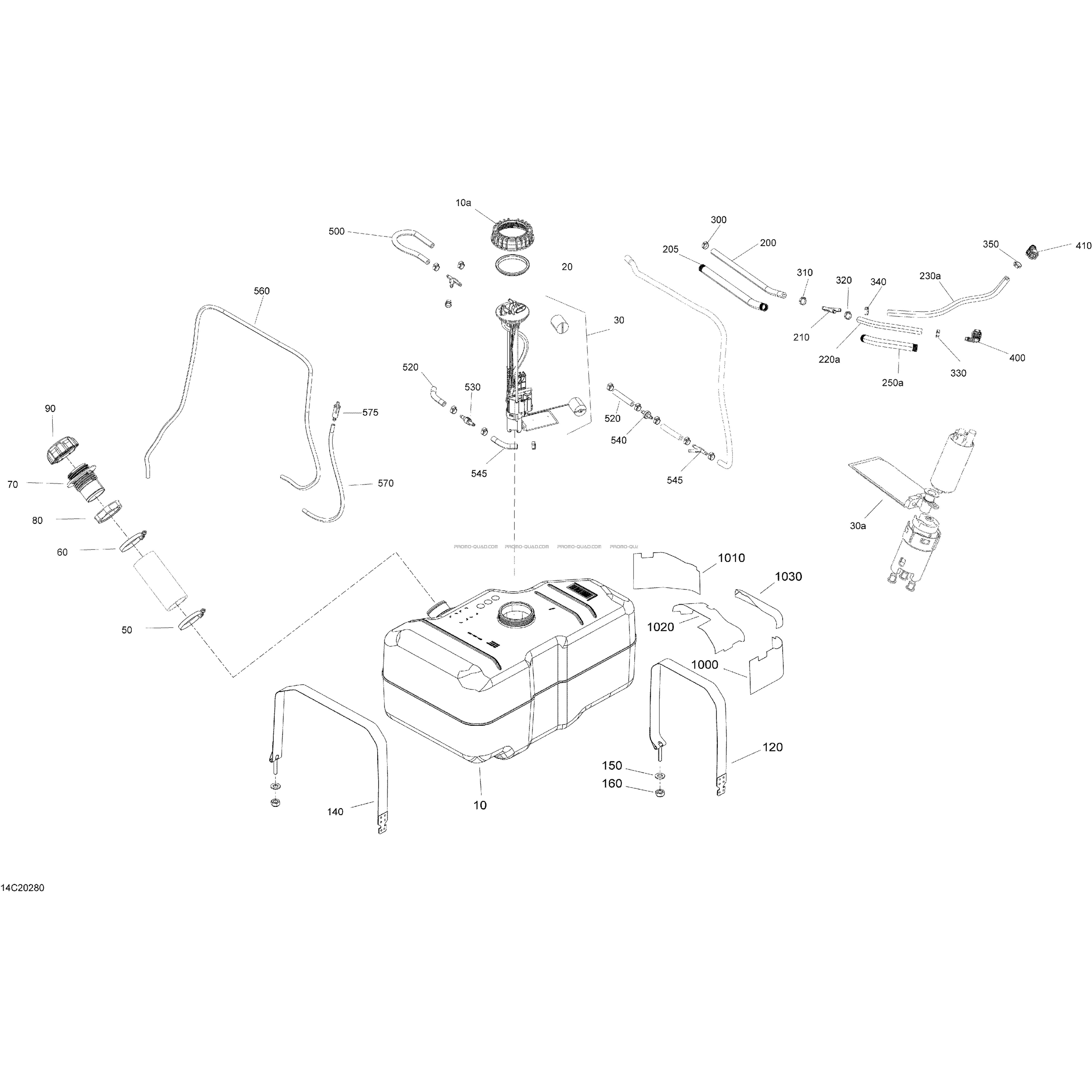 Voici le schéma présentant le Engine - Fuel - No Evap pour un Can-am 2020.